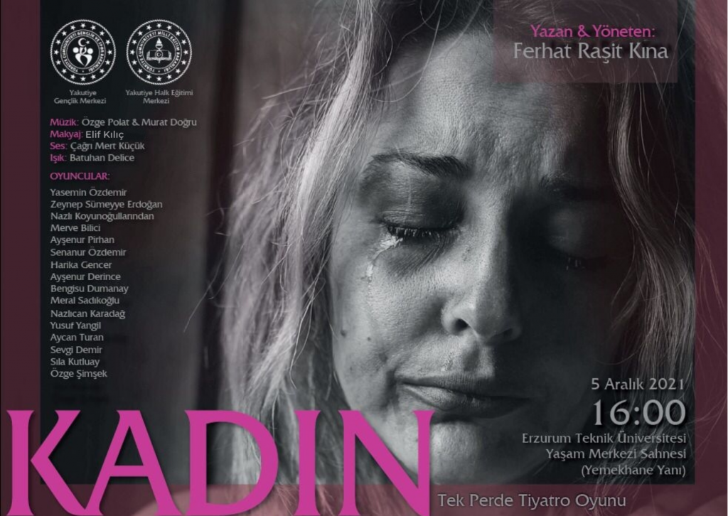 Ülkemizin en büyük kanayan yaralarından biridir kadına şiddet. Bu kanayan yara için biz, Rabarba Tiyatro Ekibi , KADIN isimli tiyatro oyunumuzla bu yaraya dikkat çekip , kadına şiddetin bir gün son bulacağını ümit ederek oyunumuzu sahneye taşıdık. Tek perdeden oluşan oyunumuz kadınlarımızın türlü sebeplerle yaşamış olduğu sorunları yansıtmaya çalışmaktadır. Oyunumuzun ETÜ sahnede üst üste on kere sahnelenmiş olması , seyircilerden tam not aldığını kanıtlar niteliktedir. Duymadığımız , görmediğimiz bir yerlerde kadınlarımızın canının yandığını hissettiren bu güzide senaryoyu sahnede izlemek için Rabarba Tiyatro internet sitemizi takipte kalabilirsiniz.